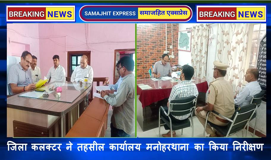 दिल्ली, समाजहित एक्सप्रेस (पत्रकार रामलाल रैगर) l झालावाड़, 11 जुलाई। जिला कलक्टर अजय सिंह राठौड़ ने गुरूवार को तहसील कार्यालय मनोहरथाना का निरीक्षण किया । इस दौरान उपखण्ड अधिकारी मनोहरथाना अरविन्द शर्मा, तहसीलदार मोहन लाल पंकज, विकास अधिकारी कैलाश मीणा सहित अन्य अधिकारी उपस्थित रहे ।