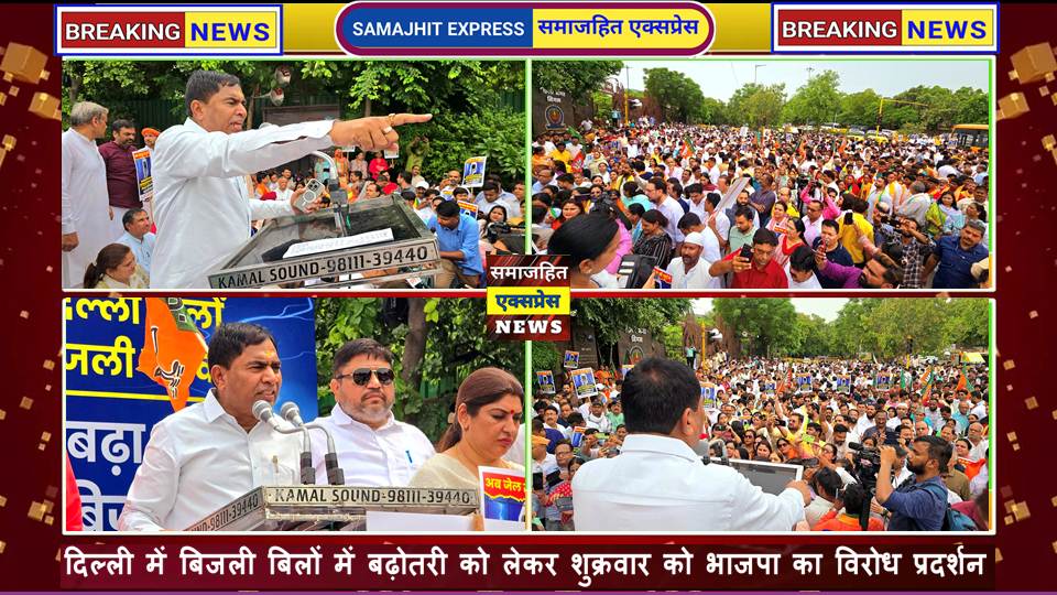 दिल्ली में बिजली बिलों में बढ़ोतरी को लेकर शुक्रवार को भाजपा का विरोध प्रदर्शन