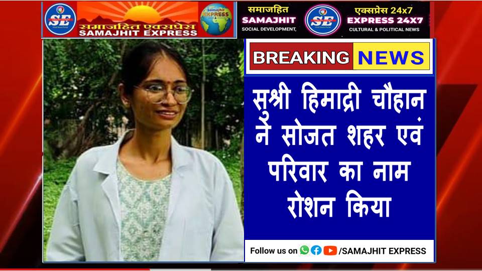 सुश्री हिमाद्री चौहान ने सोजत शहर एवं परिवार का नाम रोशन किया।