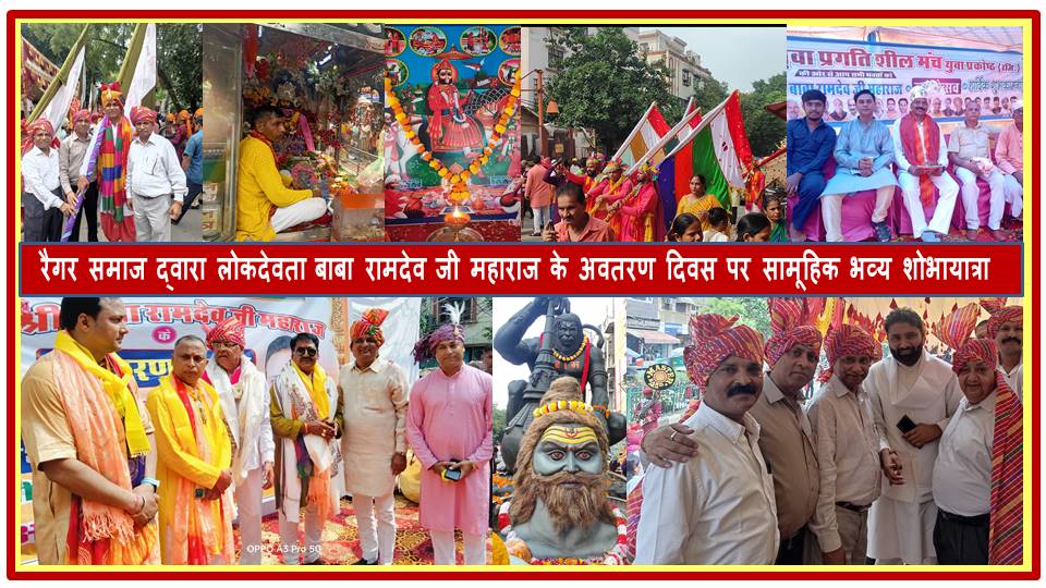 रैगर समाज द्वारा लोकदेवता बाबा रामदेव जी महाराज के अवतरण दिवस के पावन पर्व पर सामूहिक भव्य शोभायात्रा निकाली गई.