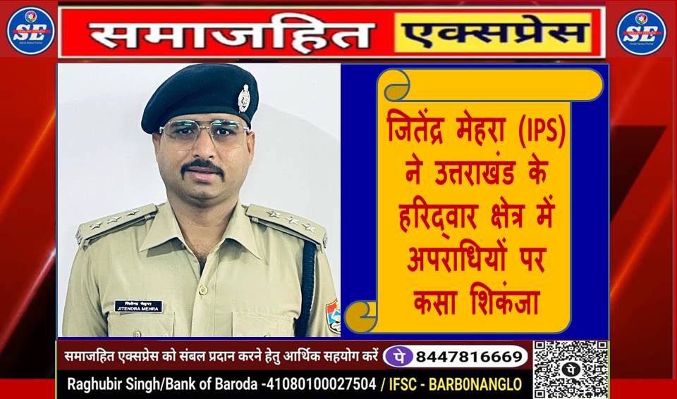 दिल्ली, समाजहित एक्सप्रेस (पत्रकार रामलाल रैगर) l भारतीय संविधान के तहत देश में पुलिस बल को किसी भी राज्य, शहर अथवा क्षेत्र में शांति बनाए रखना, अपराधों को कम करना और नागरिकों को सुरक्षा प्रदान करने की जिम्मेदारी सौंपी गई है, उत्तराखंड के हरिद्वार में उक्त दायित्व को कर्तव्य निष्ठा व ईमानदारी से निभाने वाले पुलिस ऑफिसर जितेन्द्र मेहरा, सहायक पुलिस अधीक्षक के पद पर कार्यरत है। वर्तमान में हरिद्वार क्षेत्र में अपराधियों के मन में भय का माहौल पैदा हो गया, अपराधी पुलिस ऑफिसर जितेन्द्र मेहरा का नाम सुनते ही अपने आप को इधर-उधर छिपाते फिरते है। दूसरीओर क्षेत्र की जनता अपने आप को भयमुक्त और सुरक्षित महसूस कर रही है।