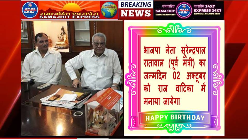 दिल्ली, समाजहित एक्सप्रेस (रघुबीर सिंह गाड़ेगांवलिया) l दिल्ली के पूर्व मंत्री माननीय सुरेंद्रपाल रातावाल जी 02 अक्टूबर को 76वां जन्मदिन दिल्ली के करोलबाग स्थित राज वाटिका में मनाया जायेगा। भाजपा नेता सुरेंद्रपाल रातावाल का जन्म 02 अक्टूबर 1948 को दिल्ली में हुआ था, इनके पिता का नाम श्री गोपाल कृष्ण रातावाल जी था। आज जन्मदिन के कार्यक्रम में रैगर समाज और भाजपा के गणमान्य लोग शामिल होंगे।