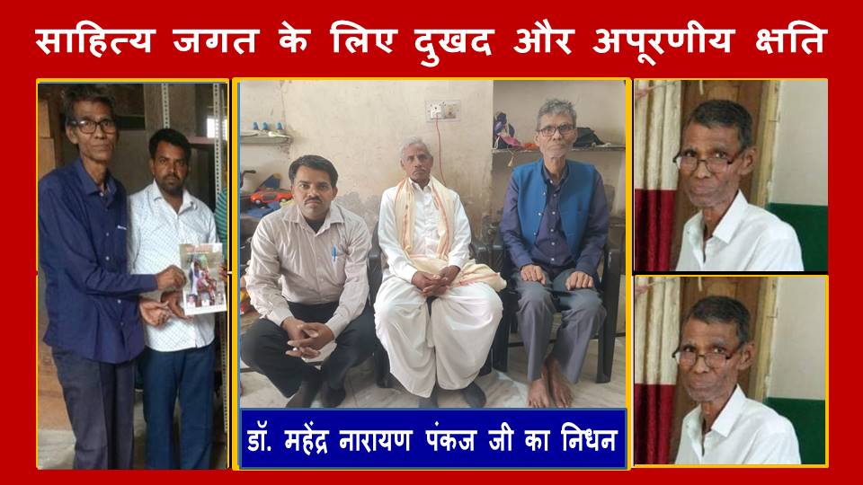 डॉ. महेंद्र नारायण पंकज जी के निधन से साहित्य जगत में छाई शोक की लहर। बीत गया “पंकज जी”के रूप में एक पहर ।।