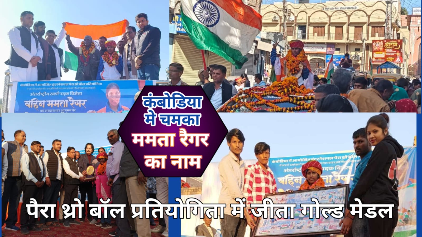 कंबोडिया में चमका ममता रैगर का नाम, थ्रो बॉल में हासिल किया गोल्ड मेडल, विजय जलूस व स्वागत