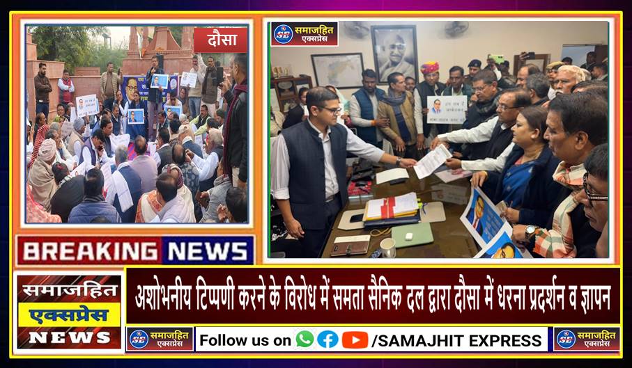 दिल्ली, समाजहित एक्सप्रेस (रघुबीर सिंह गाड़ेगांवलिया) l भारतीय संविधान निर्माता बाबा सहाब डॉ.बी.आर. अंबेडकर जी पर देश के संसद भवन में अशोभनीय टिप्पणी करने के विरोध में मंगलवार 24 दिसंबर को दौसा जिला मुख्यालय कलेक्ट्रेट स्थित शहीद स्मारक पर धरना प्रदर्शन किया गया l महामहिम राष्ट्रपति महोदय के नाम एक ज्ञापन पत्र जिला कलेक्टर माननीय देवेंद्र कुमार को सौंपा गया, जिसमे अमित शाह को तत्काल पद से त्याग पत्र की मांग की गई l