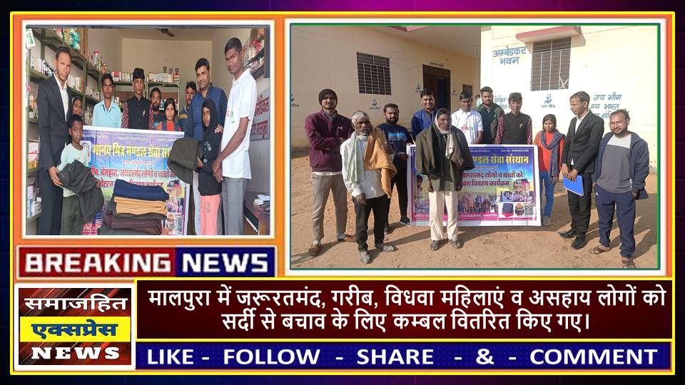 दिल्ली, समाजहित एक्सप्रेस (रघुबीर सिंह गाड़ेगांवलिया) l युवा मामले एवं खेल मंत्रालय भारत सरकार के नेहरू युवा केन्द्र टोंक,माय भारत टोंक के नेहरू नवयुवक मण्डल बृजलालनगर मालपुरा एवं मानव मित्र मण्डल सेवा संस्थान के संयुक्त तत्वावधान में आज मालपुरा शहर में अम्बेडकर अम्बेडकर भवन, अपना मेडिकल स्टोर मालपुरा, हाउसिंग बोर्ड अन्य स्थानों पर जरूरतमंद लोगों को कम्बल वितरण का कार्यक्रम रखा गया।