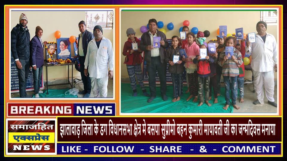 दिल्ली, समाजहित एक्सप्रेस (पत्रकार रामलाल रैगर) l झालावाड़ जिला के डग विधानसभा क्षेत्र के भवानी मंडी तहसील पचपाड़ मे बुद्धवार 15 जनवरी 2025 को बहुजन समाज पार्टी के, जिला पदाधिकारीयों एवं कार्यकर्ताओं द्वारा बसपा सुप्रीमो बहन कुमारी मायावती जी का जन्म दिवस बड़े हर्षोल्लास के साथ मनाया गया l