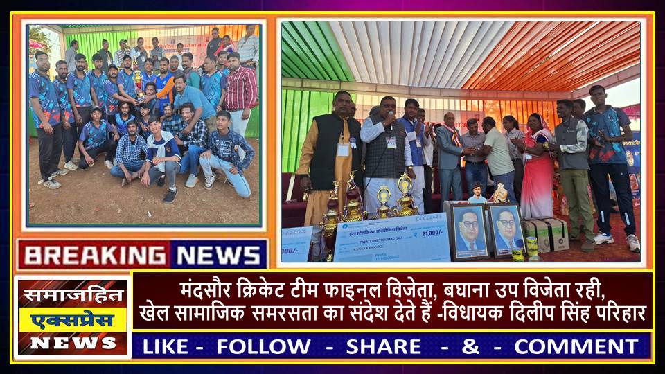 मंदसौर क्रिकेट टीम फाइनल विजेता, बघाना उप विजेता रही,क्रिकेट मैच के रोमांचक मुकाबलों में किया खेल प्रतिभा का प्रदर्शन,रेगर समाज की पांच दिवसीय इंटर स्टेट क्रिकेट प्रतियोगिता सम्पन्न