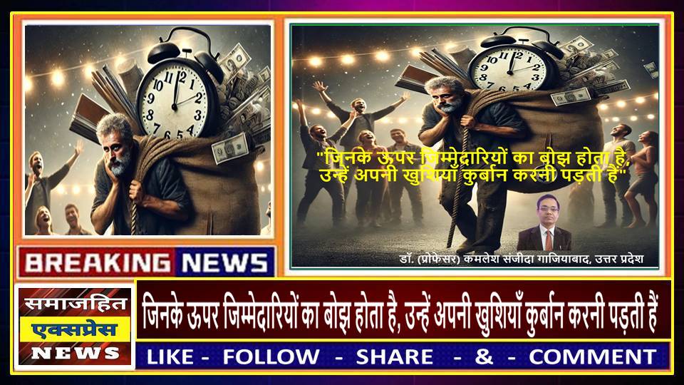 हमारे जीवन में जिम्मेदारियाँ और खुशियाँ एक-दूसरे से गहरे तरीके से जुड़ी हुई हैं। जब हम अपने परिवार, समाज, राज्य, राष्ट्र या काम के प्रति अपनी जिम्मेदारियों को निभाते हैं, तो अक्सर अपनी व्यक्तिगत इच्छाओं और खुशियों को नज़रअंदाज कर देते हैं। एक आम धारणा भी है कि “जिन्हें जिम्मेदारियाँ निभानी होती हैं, उन्हें अपनी खुशियाँ छोड़नी पड़ती हैं।” यह विचार हमारी मानसिकता को प्रभावित करता है और हमें यह विश्वास भी दिलाता है कि दूसरों के लिए कर्तव्यों को निभाने के दौरान अपनी ख़ुशियों की कीमत चुकानी पड़ती है। लेकिन क्या यह सच है? क्या हम अपनी खुशियों को हमेशा के लिए छोड़ दें? क्या जिम्मेदारियों और खुशियों के बीच संतुलन नहीं हो सकता? हमारे समाज, संस्कृति और व्यक्तिगत रिश्ते एक जटिल ढांचे की तरह होते हैं, जहां जिम्मेदारियों को निभाने के दौरान अक्सर हमें अपनी खुशियों का त्याग करना पड़ता है। खासकर वे लोग, जो परिवार, समाज, राष्ट्र या पेशेवर जीवन में अपनी जिम्मेदारियों को प्राथमिकता देते हैं, उन्हें ऐसा अनुभव होता है।