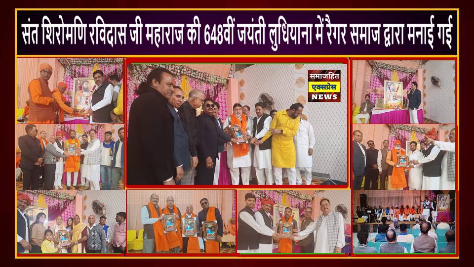 दिल्ली , समाजहित एक्सप्रेस (रघुबीर सिंह गाड़ेगांवलिया) l सामाजिक क्षेत्र में गत 21 वर्षो से कार्यरत अखिल भारतीय रैगर समाज कमेटी लुधियाना पंजाब के तत्वाधान में संत शिरोमणि रविदास जी महाराज की 648वीं जयंती के उपलक्ष्य पर अखिल भारतीय रामजन मंडल के पीठाचार्य रघुवर दास जी के सानिध्य में बुद्धवार 19 फरवरी 2025 को हाथी मंदिर धर्मशाला कुष्ठ आश्रम रोड, प्रेम नगर, कुच्चा न. 16, दुख निवारण साहिब गुरुद्वारा, लुधियाना पर भव्य कार्यक्रम आयोजित किया गया। जिसमे मुख्य अतिथि क्षेत्रीय विधायक अशोक परासर पप्पी व वीरेश विजय दानव, राष्ट्रीय मुख्य संचालक भावाधस रहे। मंच संचालन एडवोकेट सत्यपाल चांदोलिया ने किया। सभी वक्ताओं ने संत शिरोमणि गुरु रविदास जी महाराज के जीवन और उपदेशों पर प्रकाश डाला। इस कार्यक्रम में दिल्ली, हरियाणा, राजस्थान व पंजाब सहित चार प्रांतो के लोगो ने भाग लिया।