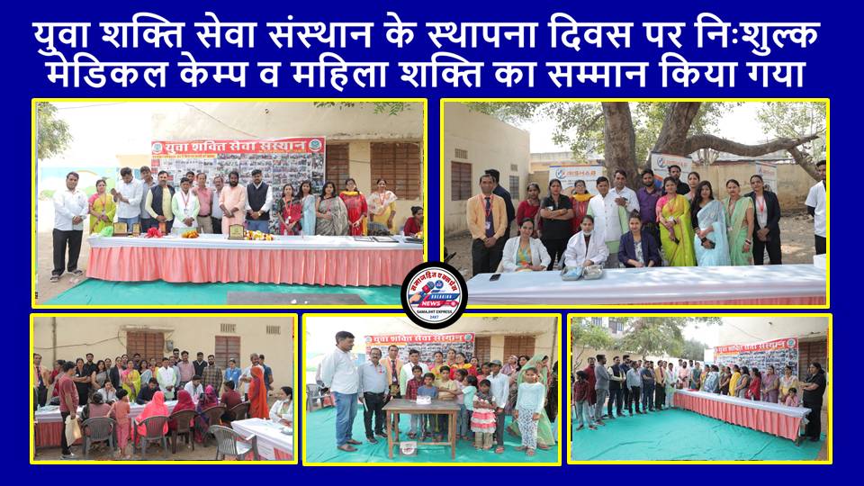 युवा शक्ति सेवा संस्थान के स्थापना दिवस पर निःशुल्क मेडिकल केम्प व महिला शक्ति का सम्मान किया गया
