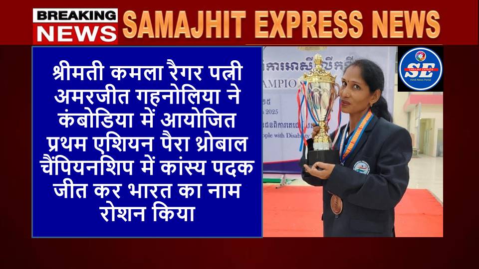 दिल्ली, समाजहित एक्सप्रेस (रघुबीर सिंह गाड़ेगांवलिया) l झुंझुनूं (राजस्थान): राजस्थान की होनहार पैरा खिलाड़ी श्रीमती कमला रैगर पत्नी अमरजीत गहनोलिया ने कंबोडिया की राजधानी फ्नोम पेन्ह में 28 मार्च से 30 मार्च 2025 तक आयोजित प्रथम एशियन पैरा थ्रोबाल चैंपियनशिप में कांस्य पदक जीत कर भारत का नाम रोशन किया हैं। इस प्रतिष्ठित प्रतियोगिता का आयोजन वर्ल्ड पैरा थ्रोबॉल फेडरेशन द्वारा पैरालंपिक कमेटी ऑफ कंबोडिया के संयुक्त तत्वावधान में किया गया ।