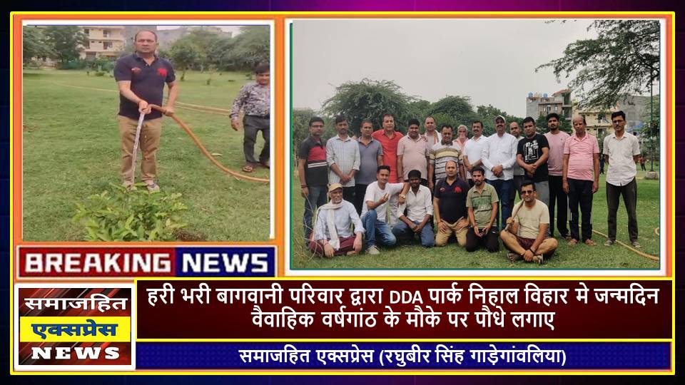 दिल्ली, समाजहित एक्सप्रेस (रघुबीर सिंह गाड़ेगांवलिया) । नांगलोई विधानसभा के DDA पार्क निहाल विहार मे हरी भरी बागवानी परिवार की मुहिम जन्मदिन वैवाहिक वर्षगांठ या किसी भी मौके पर पौधे लगाए के तहत आज भाई कौशलेंद्र ने अपने जन्मदिन के उपलक्ष में वृक्षारोपण किया और अनिल श्याम प्रदीप इन सब ने अपनी मां के नाम दो दो पेड़ लगाए । इस अवसर पर सभी साथियों का वृक्षारोपण करने के लिए धन्यवाद और आभार व्यक्त किया गया।