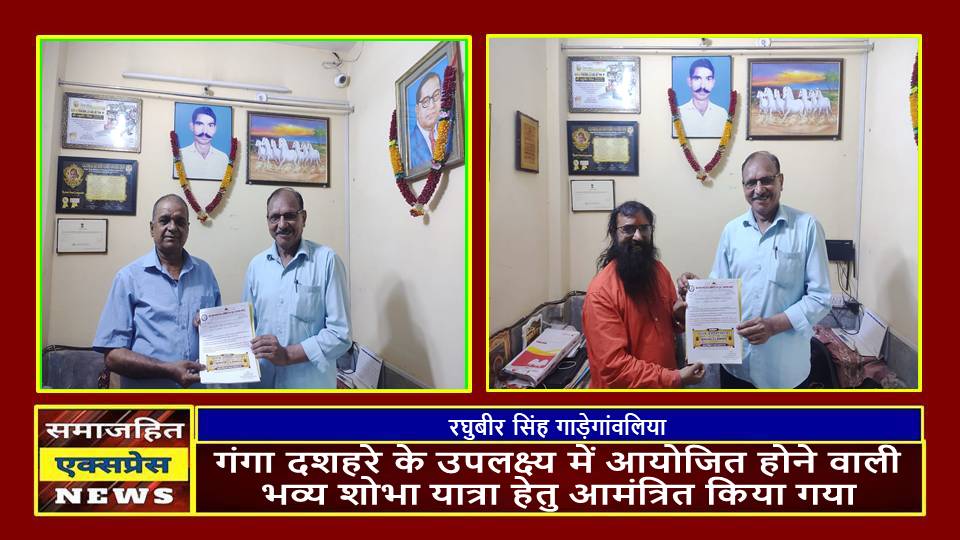 इस भव्य धार्मिक शोभा यात्रा आयोजन के संस्थापक व संयोजक अशोक कुमार सीवाल जी व मित्रसैन बसेटिया जी का समाजहित एक्सप्रेस न्यूज़ पोर्टल के ऑफिस पर आकर वीरवार 5 जून 2025 प्रात: 9 बजे श्री गंगा मन्दिर 53 रैगर पुरा,करोल बाग पर श्री गंगा माई के पावन पर्व गंगा दशहरे के उपलक्ष्य में आयोजित होने वाली भव्य शोभा यात्रा हेतु आमन्त्रण पत्र देकर आमंत्रित किया गया।