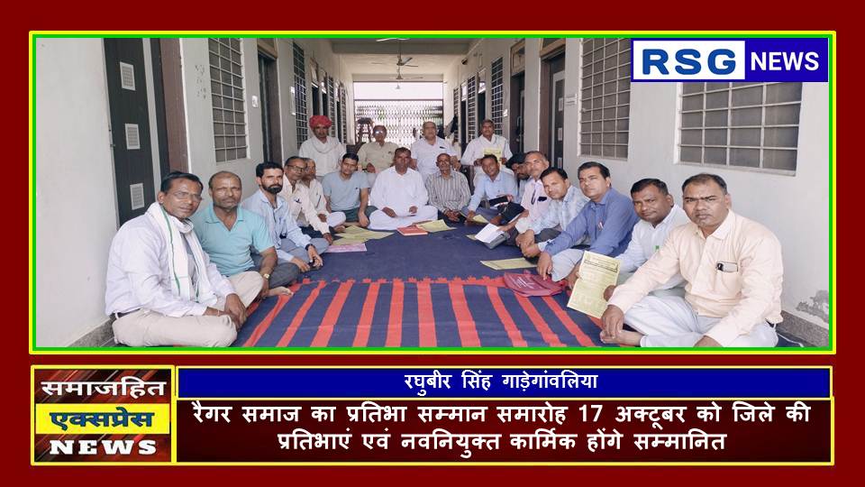रैगर समाज का प्रतिभा सम्मान समारोह 17 अक्टूबर को