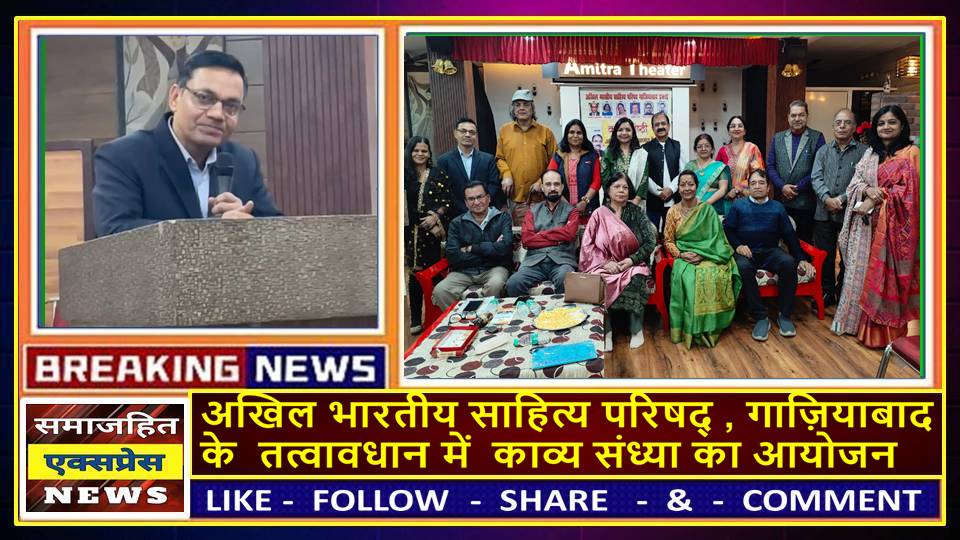 दिल्ली, समाजहित एक्सप्रेस (रघुबीर सिंह गाड़ेगांवलिया) । गाज़ियाबाद (उoप्रo)- 16 नवम्बर 2025 दिन रविवार को अखिल भारतीय साहित्य परिषद् , गाज़ियाबाद के तत्वावधान में काव्य संध्या का आयोजन अमित्र थियटर, पटेल नगर-2, गाज़ियाबाद में किया गया, इस काव्य संध्या में कविताओं, गीतों, दोहों, माहिओं और ग़ज़लों के तरह-तरह जिंदगी के विभिन्न पहलुओं जिनमें , प्यार, मुहब्बत, हमारी संस्कृति , हमारी सांस्कृतिक धरोहर, देशभक्ति, सामाजिक समरसता पर काव्य के रंग बिखेरे गए। कार्यक्रम की अध्यक्षता- डॉ. प्रोमोद कुमार कुश ‘तन्हा’ मुंबई से, मुख्य अतिथि- डॉ. चेतन आनंद , विशिष्ठ अतिथि-नेहा वैद, मीरा शलभ रहे। सबसे पहले कार्यक्रम का प्रारम्भ दीप प्रजवलन के बाद सरस्वती वंदना – सुप्रिया सिंह वीणा ने अपने मधुर कंठ से मधुर आवाज से की, जिससे श्रोताओं का मन को मोह लिया, इसके बाद बी. एल. बत्रा ‘अमित्र’ जी ने मंच की गरिमा को ध्यान में रखते हुए सभी अतिथियों को मंचासीन करवाने के उपरान्त, सभी अतिथियों का सम्मान मालार्पण से किया गया। इस अवसर पर बेबाक बाराबंकवी जी को अमित्र फाउंडेशन सम्मान से सम्मानित किया गया।