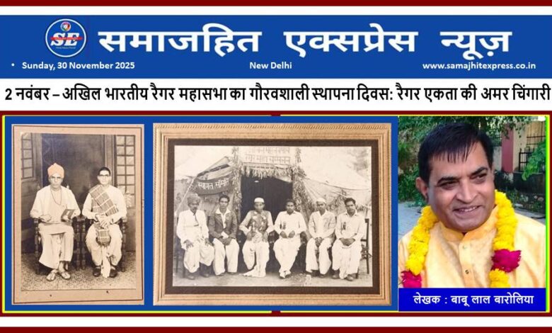 2 नवंबर – अखिल भारतीय रैगर महासभा का गौरवशाली स्थापना दिवस: रैगर एकता की अमर चिंगारी
