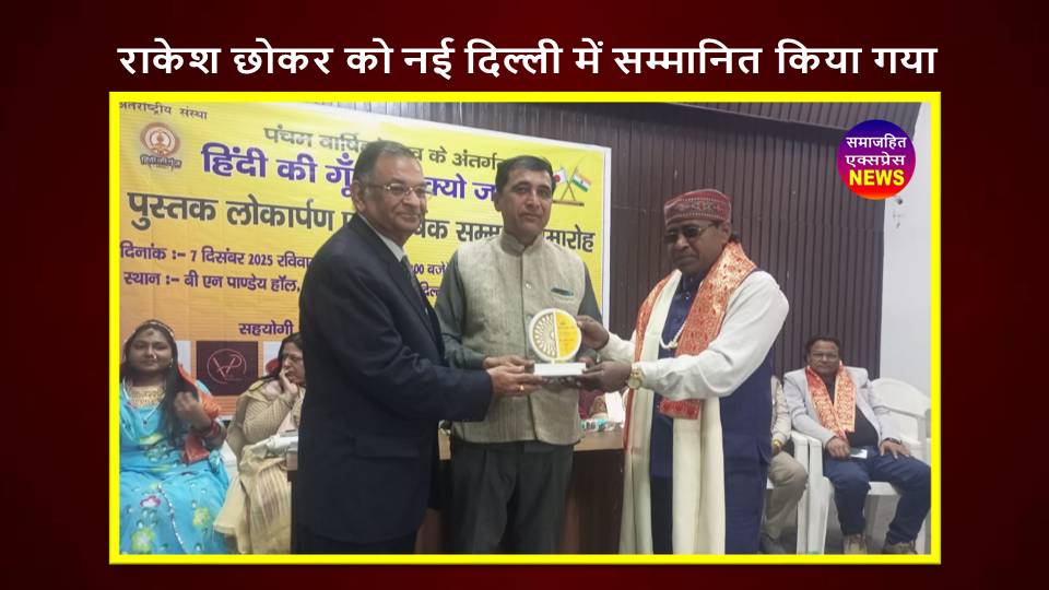 दिल्ली, समाजहित एक्सप्रेस (रघुवीर सिंह गाड़ेगांवलिया) । नई दिल्ली, 7 दिसंबर 2025 – हिंदी की गुंज, टोक्यो, जापान के तत्वाधान में रविवार को पुस्तक लोकार्पण एवं वार्षिक सम्मान समारोह का आयोजन बी एन पांडेय हॉल, गांधी दर्शन, राजघाट पर किया गया। इस अवसर पर सहारनपुर निवासी राकेश छोकर को विभिन्न क्षेत्रो में उनकी विशेष उपलब्धियों के लिए सम्मानित किया गया।