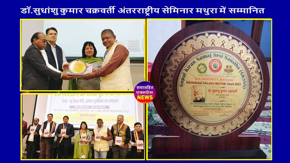 डॉ.सुधांशु कुमार चक्रवर्ती अंतरराष्ट्रीय सेमिनार मथुरा में सम्मानित