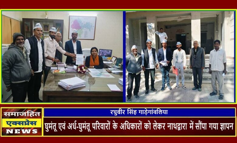 घुमंतू एवं अर्ध-घुमंतू परिवारों के अधिकारों को लेकर नाथद्वारा में सौंपा गया ज्ञापन