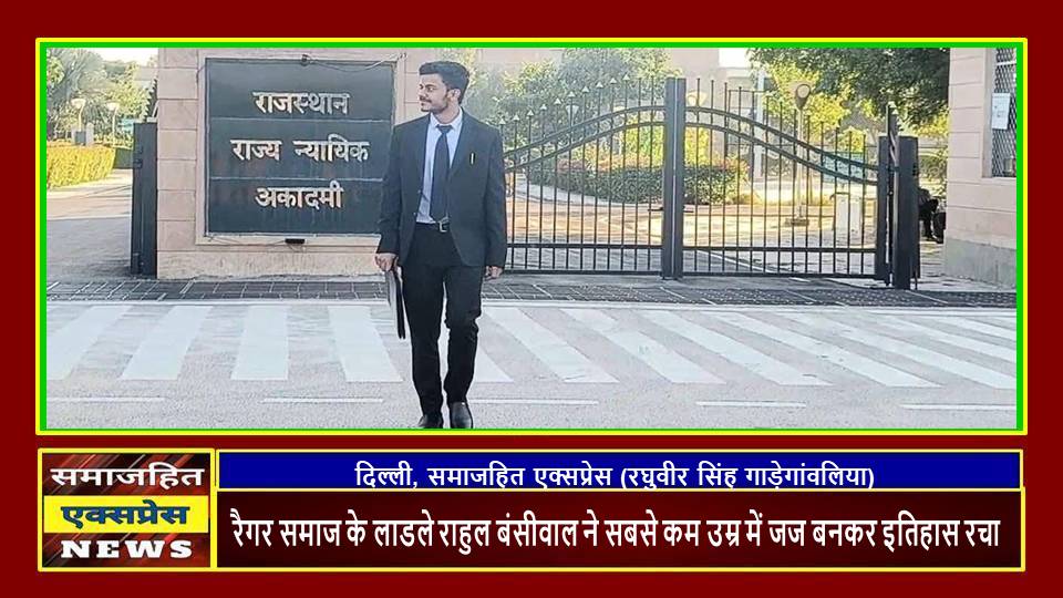 दिल्ली, समाजहित एक्सप्रेस (रघुवीर सिंह गाड़ेगांवलिया) l आरजेएस परीक्षा.2025 के अंतिम परिणाम शुक्रवार 19 दिसम्बर को घोषित किए गए। जिसमे रैगर समाज के लाल राहुल बंसीवाल जिनका रोल नंबर 44395 है। पहले प्रयास में 31वीं रैंक के साथ सफलता प्राप्त कर, महज 21 साल 3 महीने की उम्र में सिविल जज बनकर रैगर समाज और प्रदेश को गौरवान्वित कर दिया है।