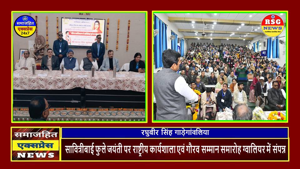 दिल्ली, समाजहित एक्सप्रेस (रघुबीर सिंह गाड़ेगांवलिया) । गोपाल किरन समाजसेवी संस्था द्वारा कमला राजे कन्या स्वशासी स्नातकोत्तर महाविद्यालय,ग्वालियर के संयुक्त तत्वावधान में सावित्रीबाई फुले जयंती के अवसर पर कमला राजे कन्या स्वशासी स्नातकोत्तर महाविद्यालय के सेमिनार हाल में राष्ट्रीय कार्यशाला एवं सम्मान समारोह का भव्य आयोजन किया गया। यह कार्यक्रम के.सी. मीणा (IFS) के संरक्षण में, शिक्षाविद्,समाजसेवी,साहित्यकार एवं परामर्शदाता पी.यादव ‘ओज’ तथा गोपाल किरन समाजसेवी संस्था के अध्यक्ष श्रीप्रकाश सिंह निमराजे के नेतृत्व में दो सत्रों में संपन्न हुआ। मंच संचालन डॉ.कृष्णा सिंह एवं इंजीनियर ज्योति दोहरे ने किया।