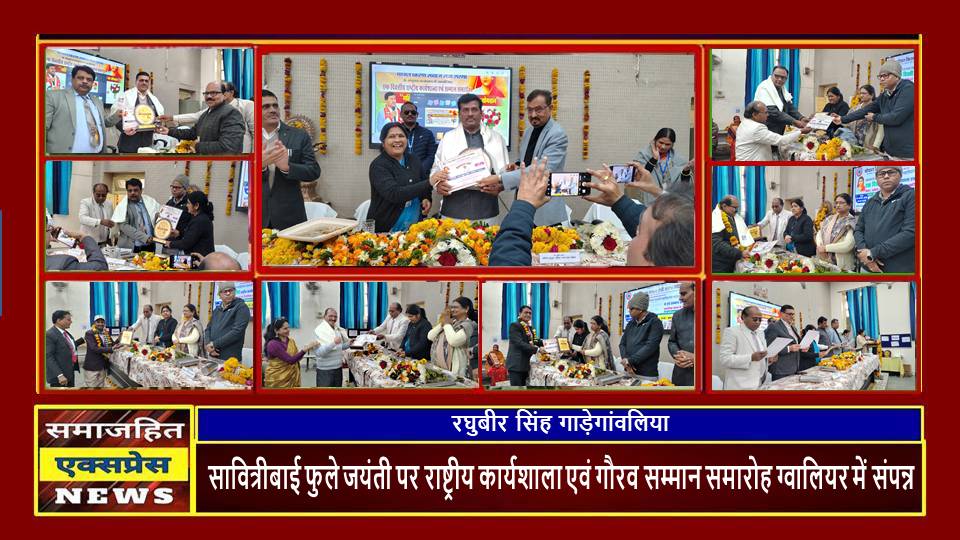 सावित्रीबाई फुले जयंती पर राष्ट्रीय कार्यशाला एवं गौरव सम्मान समारोह ग्वालियर में संपन्न