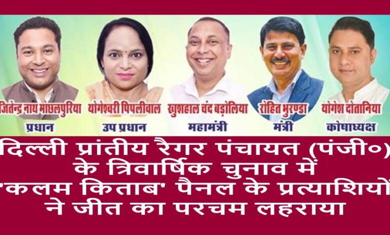 दिल्ली प्रांतीय रैगर पंचायत (पंजी०) के त्रिवार्षिक चुनाव में ‘कलम किताब’ पैनल ने जीत दर्ज की