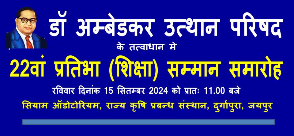 डॉ अंबेडकर उत्थान परिषद के तत्वाधान मे 22वां प्रतिभा (शिक्षा) सम्मान समारोह जयपुर में किया जायेगा
