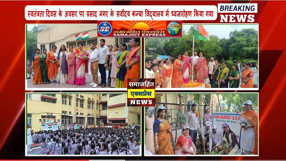 प्राप्त जानकारी के मुताबिक 78वें स्वतंत्रता दिवस के अवसर पर बाबा रामदेव सर्वोदय कन्या विद्यालय, प्रसाद नगर में विधायक प्रतिनिधि राजन अटल विशेष अतिथि के रूप में प्रधानाचार्य श्रीमंती ममता वैद्य जी, विद्यालय की सभी अध्यापिकाओं एवं पूरी SMC टीम के साथ ध्वजारोहण किया गया l ध्वजारोहण के उपरान्त वृक्षारोपण कार्यक्रम में विशेष अतिथि राजन अटल ने प्रधानाचार्य के साथ विद्यालय परिसर में पौधा लगाया l