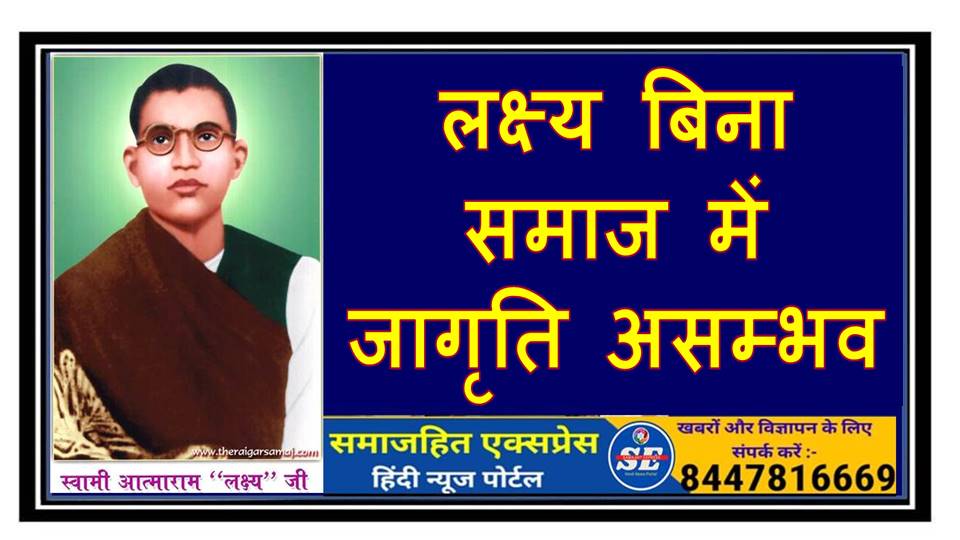 रैगर समाज के इतिहास पुरूष अमर शहीद त्यागमूर्ति स्वामी श्री आत्मा राम जी ‘लक्ष्य’ ने परम श्रद्धेय पूजनीय स्वामी श्री ज्ञानस्वरूप जी महाराज के परमशिष्य बनकर उन्हीं की कृपा से काशी में व्याकरण भूषणाचार्य पद को प्राप्त कर, अपने सतगुरू के आदेशानुसार जातीय उत्थान का ”लक्ष्य” लेकर रैगर समाज के उत्थान के लिए भारत देश के ग्राम-ग्राम में जाकर अपनी रैगर जाति में व्याप्त कुरीतियों के सुधार हेतु शिक्षा का प्रचार-प्रसार किया । बेगार बहिष्कार, बाल-विवाह, मृत्यु भोज, पाखंड, दिखावा और फिजूल खर्ची पर पाबन्दियां लगाई और शिक्षा का प्रचार प्रसार कर लोगों को शिक्षित होने के लिए संकल्प दिलवाया । यही उनका ”लक्ष्य ” था । इसी ‘लक्ष्य ’ की प्राप्ति के लिए उन्हों ने अपने सम्पूर्ण जीवन काल में जगह-जगह जाकर समस्त रैगर बन्धुओं को जैसे दिल्ली, कराची, हैदराबाद (सिंध), पंजाब, मीरपुर, टन्डय आदम, अहमदाबाद, गुजरात, ब्यावर, जोधपुर, जैसलमेर, बीकानेर, छोटीसादड़ी, करजू, कराणा, कणगट्टी, फागी, इन्दौर, जयपुर, अलवर आदि व राजस्थान राज्य के अनेक ग्रामों से सभी सजातीय बन्धुओं को एक वृहद समाज का अखिल भारतीय रैगर समाज का महासम्मेलन दौसा ग्राम में अजमेर के श्री चान्दकरण जी शारदा शेर राजस्थान की अध्यक्षता में 2, 3 व 4 नवम्बर, 1944 को सफल आयोजन किया और उस सम्मेलन के स्वागताध्यक्ष आप ही थे । वह दिन आज भी चिरस्मरणीय है जिनको चार घोड़ों की बग्घी में अपने गुरू स्वामी ज्ञानस्वरूप जी महाराज के चरणों में बैठकर चांद करण जी शारदा की अध्यक्षता में समाज के उत्थान के लिए कुरीतियों को मिटाने के प्रस्ताव पास किए जो आज तक समाज में लागू है । दूसरा सम्मेलन सन् 1946 में जयपुर में दिल्ली निवासी चौधरी कन्हैयालाल जी रातावल की अध्यक्षता में आयोजित किया जिसके चौ. गौतम सिंह जी सक्करवाल स्वागताध्यक्ष बने ।