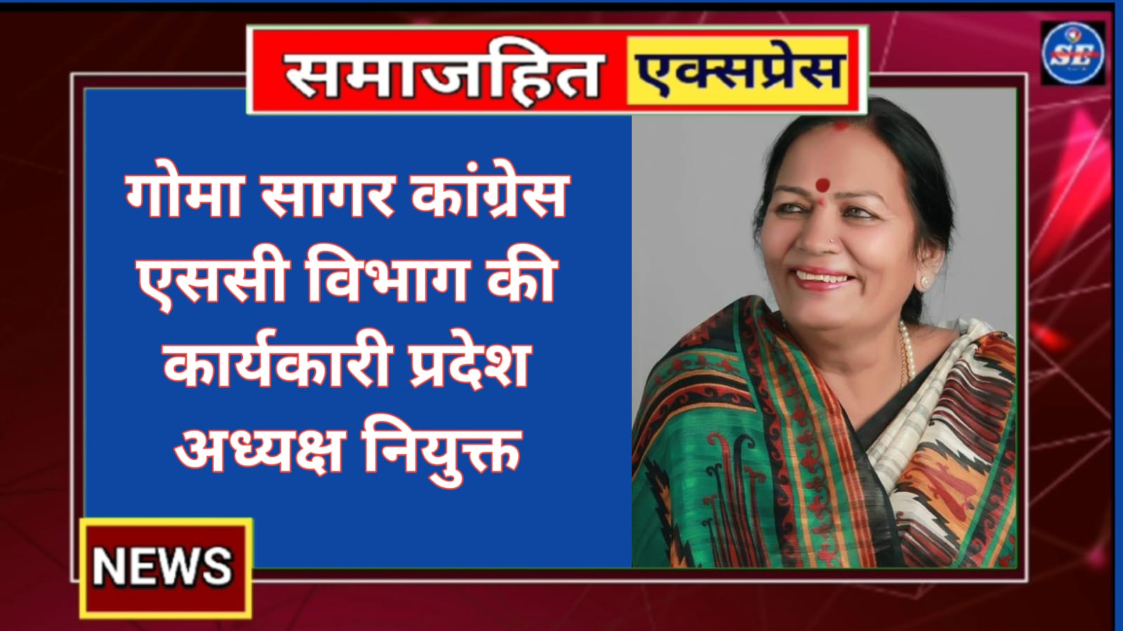 गोमा सागर कांग्रेस एससी विभाग की कार्यकारी प्रदेश अध्यक्ष नियुक्त