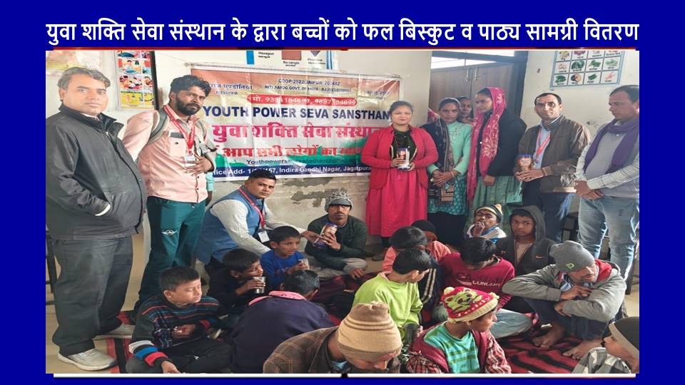 युवा शक्ति सेवा संस्थान के द्वारा मानसिक पुनर्वास ग्रह में बच्चों को फल बिस्कुट व पाठ्य सामग्री वितरण किया गया