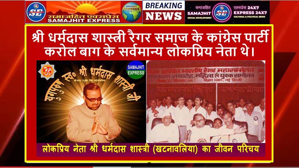 श्री धर्मदास शास्त्री रैगर समाज के कांग्रेस पार्टी करोलबाग के सर्वमान्य लोकप्रिय नेता थे।