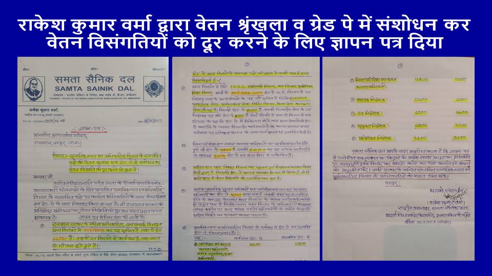 - राजस्थान सरकार इनकी वेतन विसंगतियों को तत्काल संशोधित कर इन अधिकारियों को राहत प्रदान करे l