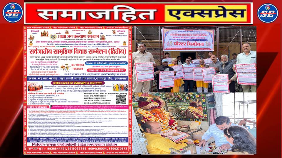 दिल्ली, समाजहित एक्सप्रेस (पत्रकार रामलाल रैगर) l झालावाड़। आशा जन कल्याण संस्थान, झालावाड़ के तत्वावधान में 30 अप्रेल 2025 बुधवार, आखातीज को झालावाड़ शहर में होने जा रहे सर्वजातीय सामूहिक विवाह सम्मेलन के संयोजक व कार्यकारिणी ने गढ़ गणेश मन्दिर पहुचकर प्रथम पूज्य श्री गणपति महाराज की पूजा अर्चना कर सामूहिक विवाह सम्मेलन का न्योता दिया।