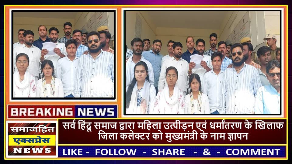 सर्व हिंदू समाज द्वारा महिला उत्पीड़न एवं धर्मांतरण के खिलाफ जिला कलेक्टर को मुख्यमंत्री के नाम ज्ञापन
