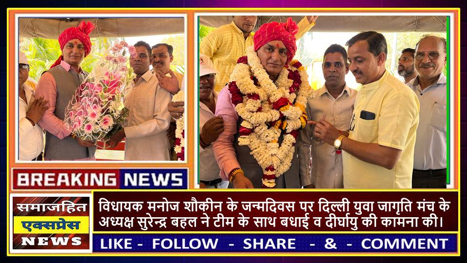 दिल्ली, समाजहित एक्सप्रेस (रघुबीर सिंह गाड़ेगांवलिया) l नांगलोई विधानसभा क्षेत्र से विधायक मनोज शौकीन जी के जन्म दिवस के मौके पर भाजपा कार्यकर्ताओं व क्षेत्रीय लोगो में जोरदार उत्साह देखा गया । इस अवसर पर दिल्ली युवा जागृति मंच के अध्यक्ष भाई सुरेन्द्र बहल ने अपनी टीम के सदस्यों के साथ विधायक मनोज शौकीन जी के निवास पर पहुंचकर मनोज शौकीन जी को पटका पहना कर फूल माला, पुष्प गुलदस्ता भेंट कर उनके कर कमलो से कैक कटवाया और खिलाया तथा जन्मदिन की बधाई और विधायक की लंबी उम्र की कामना की।