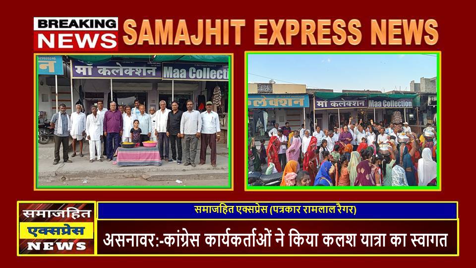 दिल्ली,समाजहित एक्सप्रेस (पत्रकार रामलाल रैगर) l असनावर कस्बे में हनुमान जयंती के अवसर पर भील समाज द्वारा कलश यात्रा का आयोजन किया गया कलश यात्रा असनावर बस स्टैंड वनवासी भवन से शुरू होकर कस्बे के मेन हाइवे से होते हुए असनावर उपखंड कार्यालय के सामने चौकी वाले बालाजी मंदिर पर यात्रा का समापन हुआ