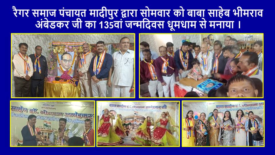 रैगर समाज पंचायत मादीपुर द्वारा सोमवार को बाबा साहेब भीमराव अंबेडकर जी का 135 वां जन्मदिवस धूमधाम से मनाया ।